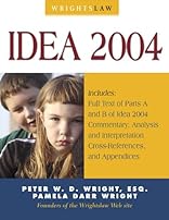 Wrightslaw: IDEA 2004 includes the full text of Parts A and B of the Individuals with Disabilities Education Improvement Act of 2004 (IDEA 2004) with commentary, cross-references, strategies, and resources. This book is designed to meet the needs of parents, teachers, advocates, attorneys, related services providers, administrators, teachers of special education, school psychology, and educatio... More
